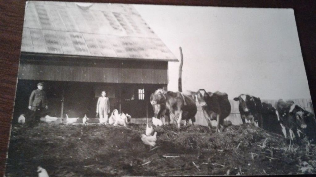 Picture of Joseph Hershey and adopted daughter Emma Elizabeth King outside of their barn which still stands today.