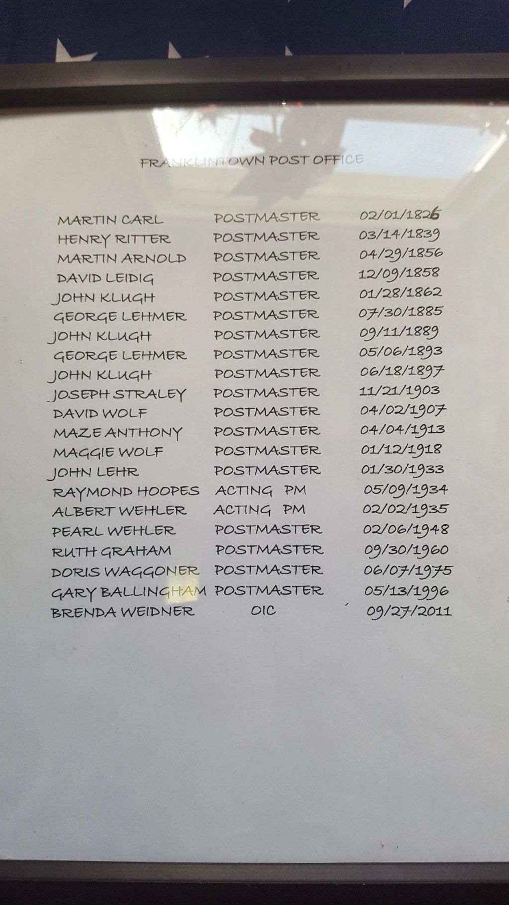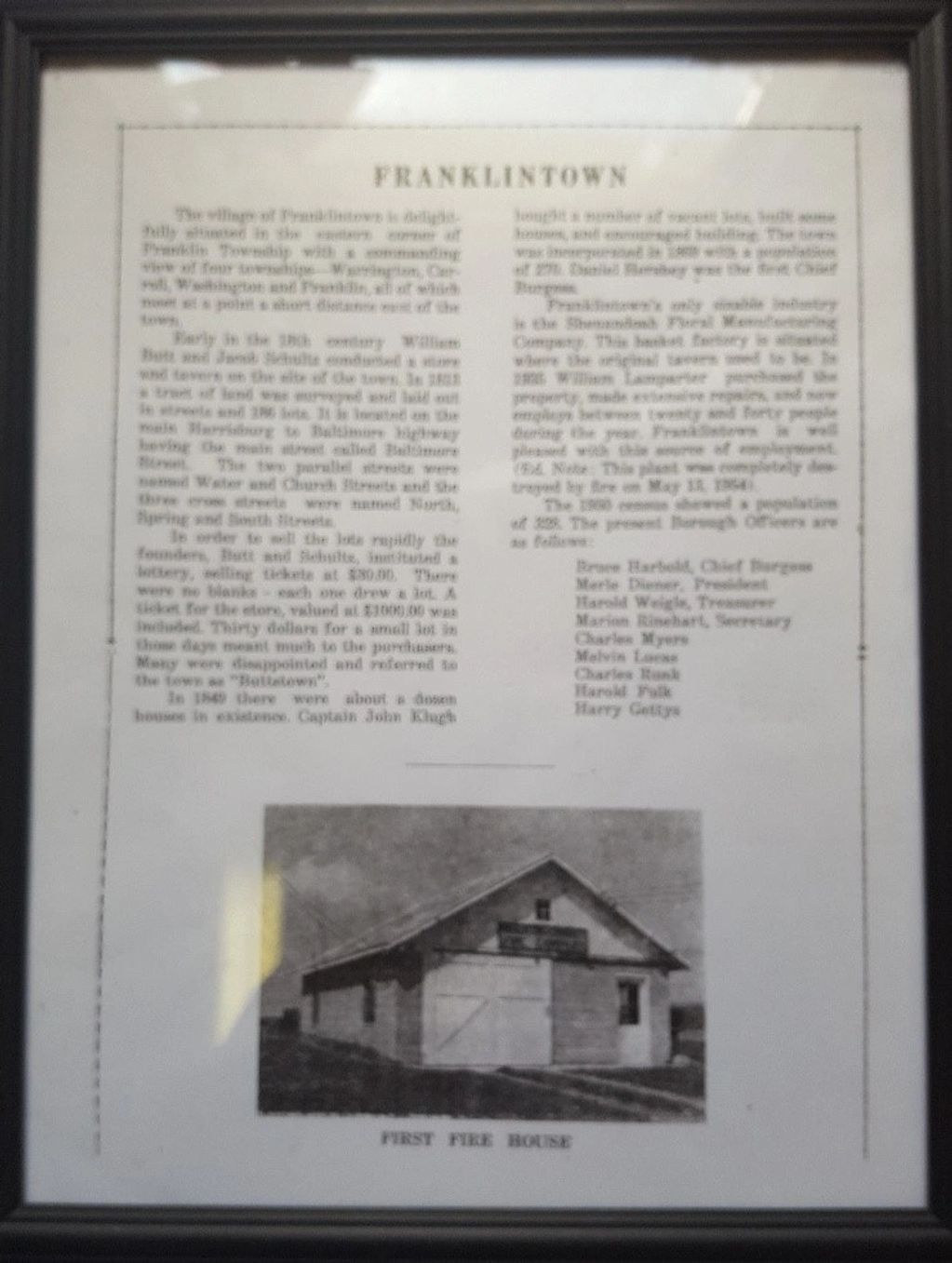 Franklintown was incorporated as a borough in 1869. Daniel Hershey was the first Chief Burgess. The Borough was resurveyed and the streets were graded and paved in the same year. The population in 1900 was approximately 250.00