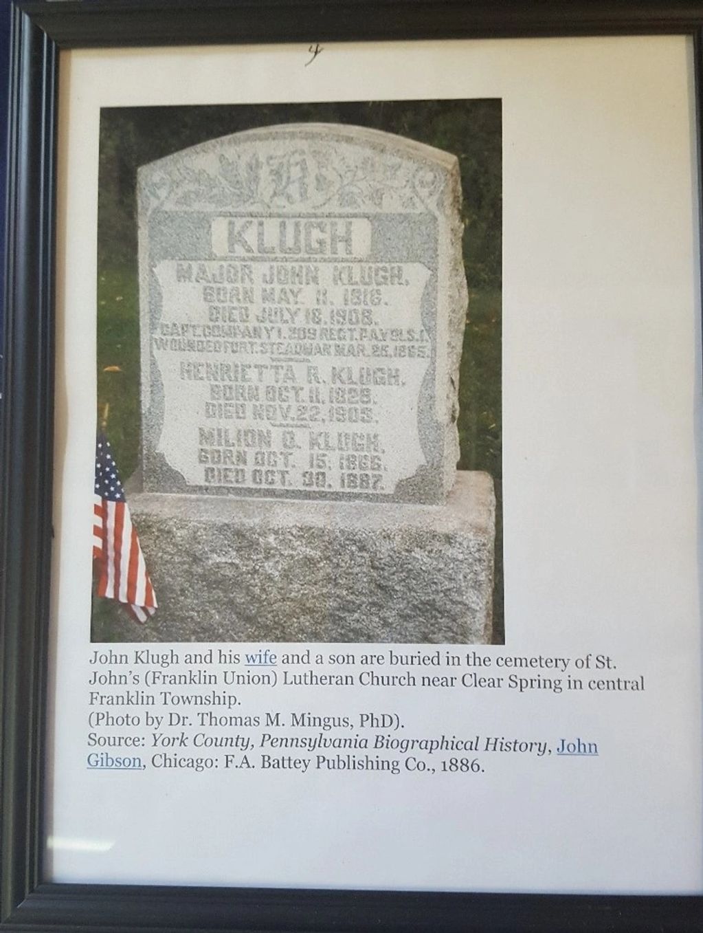 John Klugh is credited with populating the town after the Buttstown debacle. He was a Military Captain and lead our townsmen in battle. Information collected by Marie Kuykendall for our 2013 150th Founders day celebration, then donated to NYCHAPS and later loaned back for our 2019 150th Incorporation Celebration along with some pieces from NYCHAPS archives.